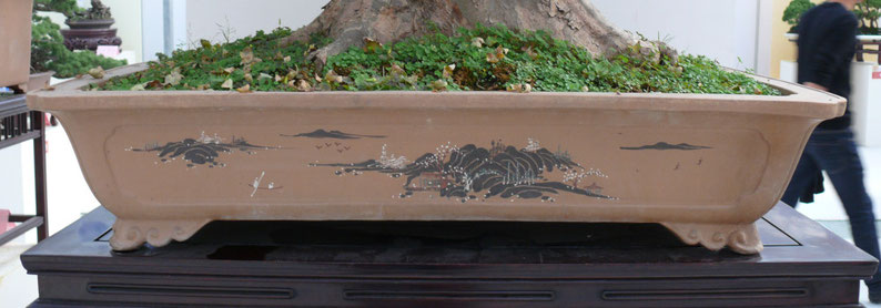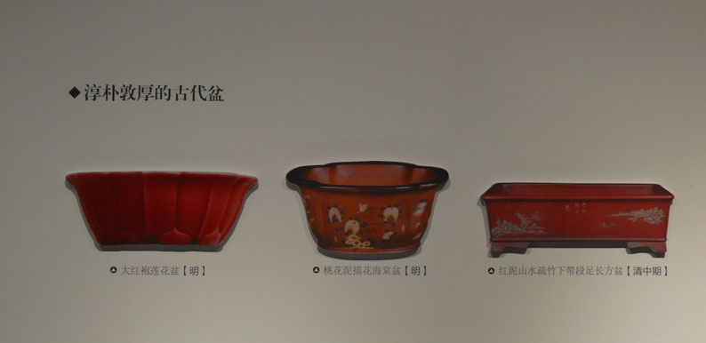 Im neu eröffneten Penjing-Museum von Rugao waren viele schöne Penjing in interessanten Schalen zu sehen. Den Schalen als solchen wurde in Form von Wandbildern Aufmerksamkeit zuteil.