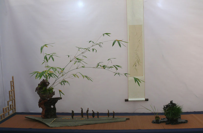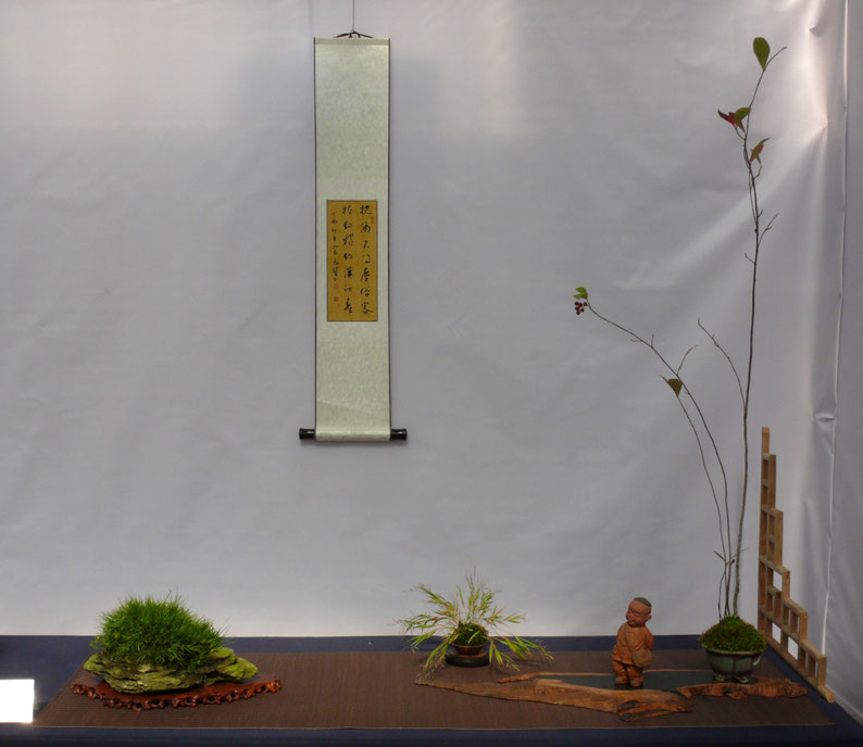 Bei den Kusamono-Präsentationen wurde gerne Gebrauch von Rollbildern und Figuren gemacht.