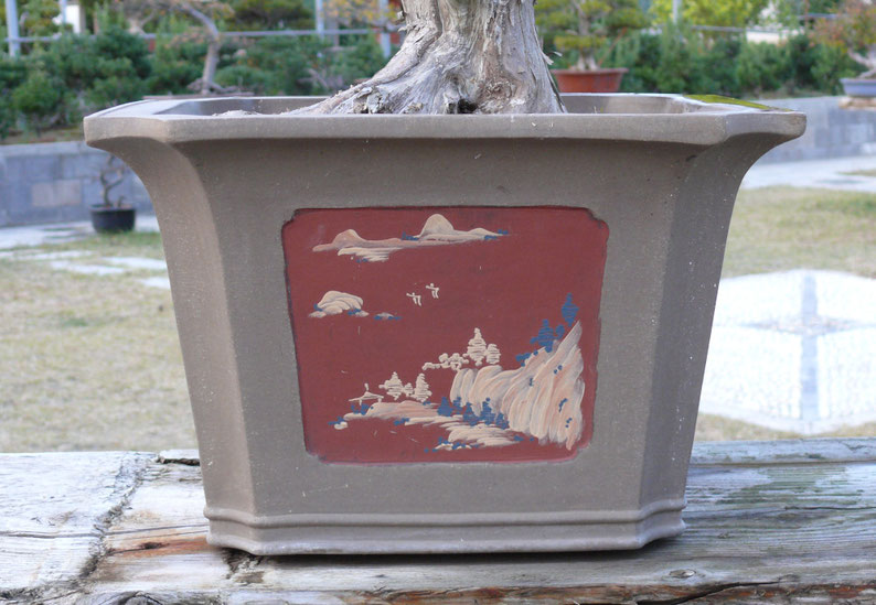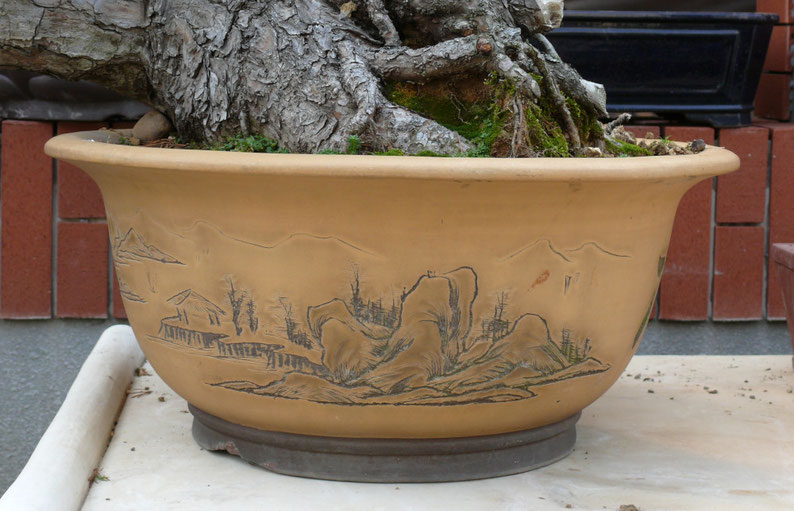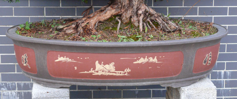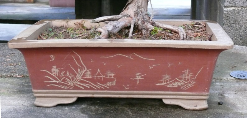 Ein weiterer großer China-Wacholder in einer klassischen unglasierten Schale aus rotem Ton.