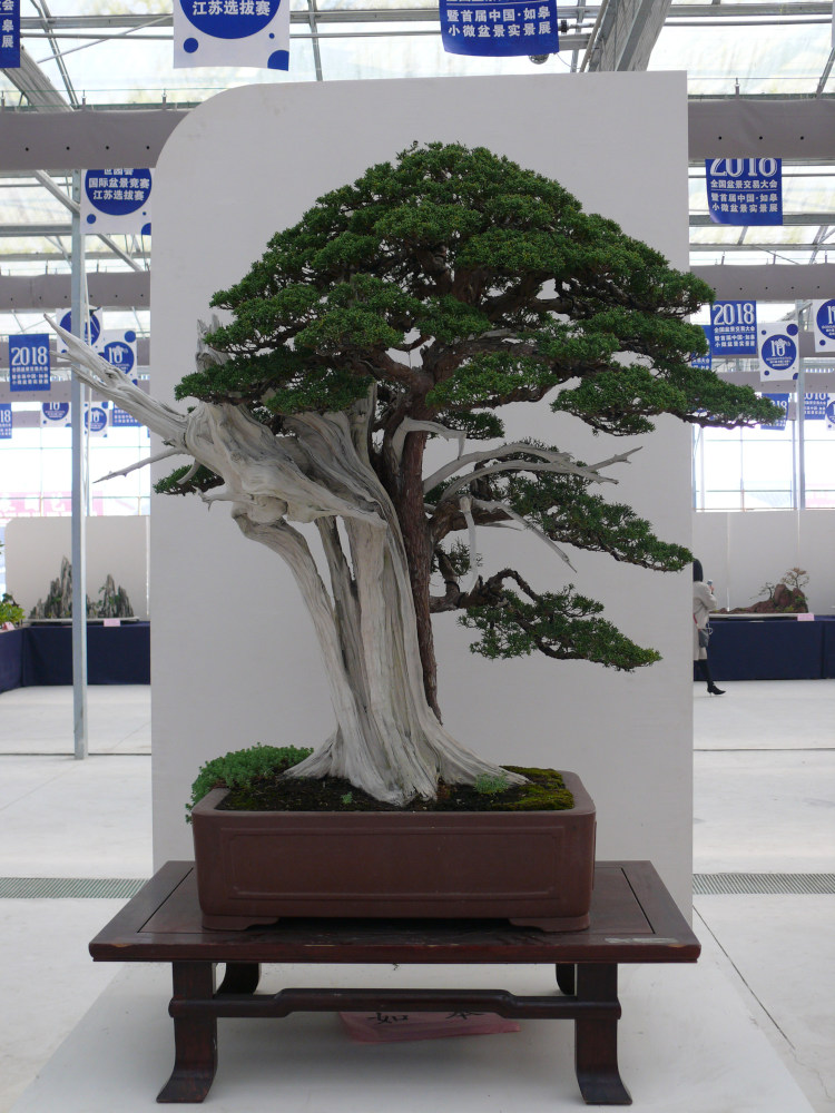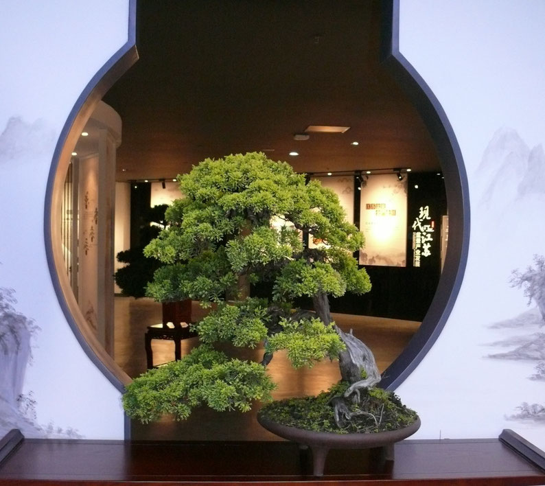 Im Ausstellungsbereich der großen Penjing waren viele schöne, alte Bäume zu sehen. Einige Beispiele zeigen die folgenden Bilder.